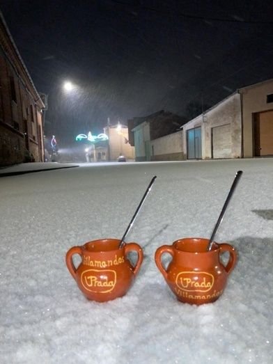 Villamandos ya luce una capa blanca con la llegada de la borrasca Filomena. A pesar del frío, del viento y de la nieve la nieve es una gran oportunidad para disfrutar de un buen caldo del bar Prada.