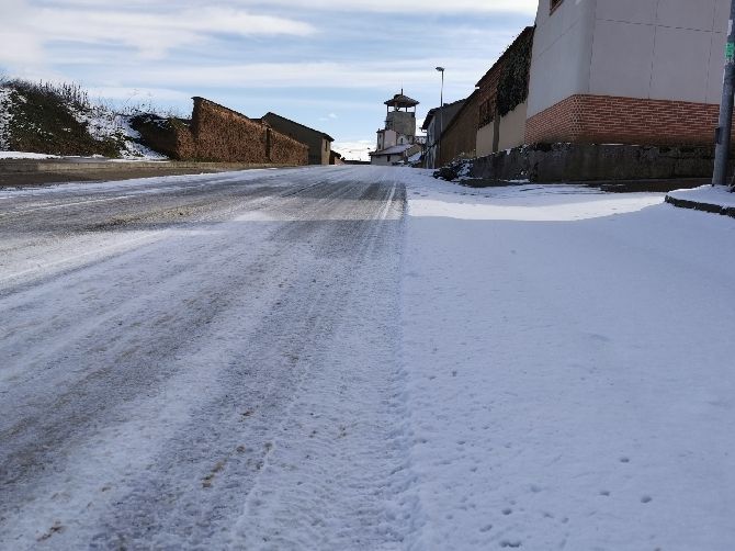 El Ayuntamiento de Villaquejida, de forma previsora, ya había esparcido por las calles del municipio sal para evitar la formación de hielo.