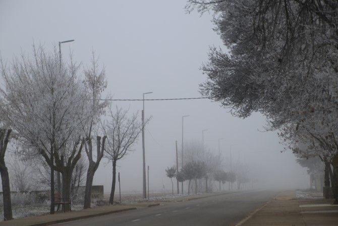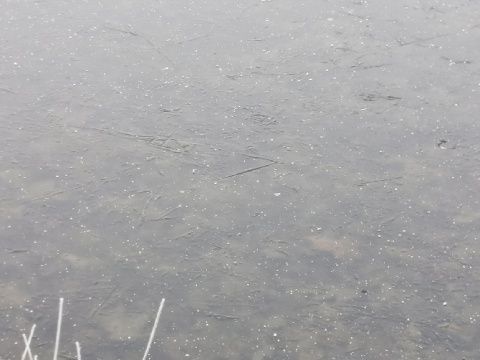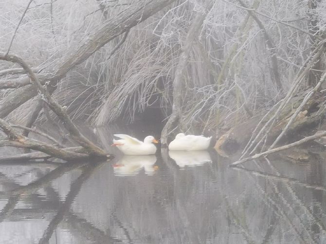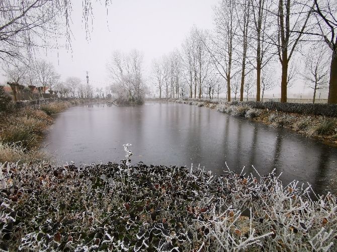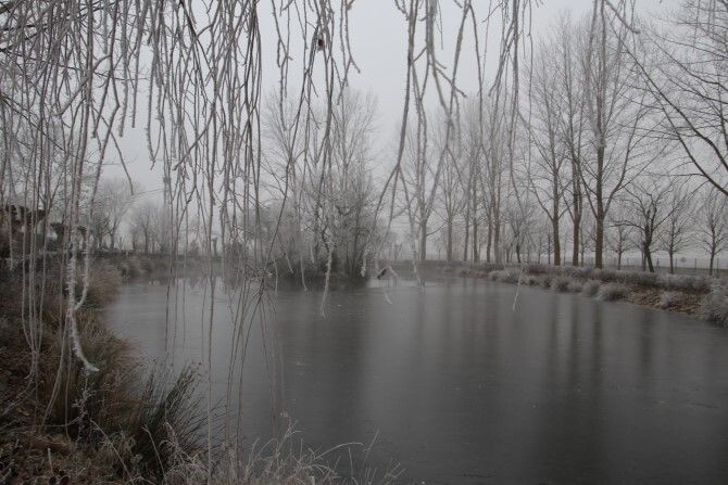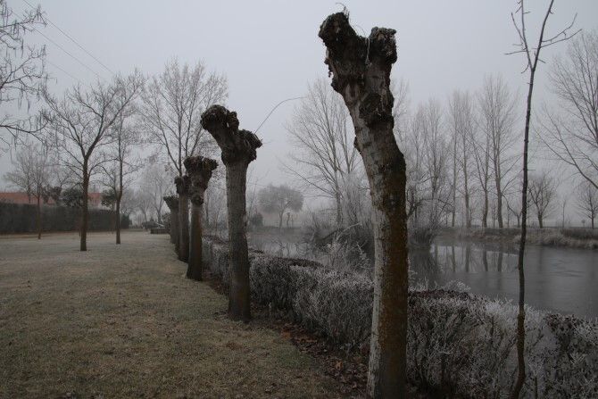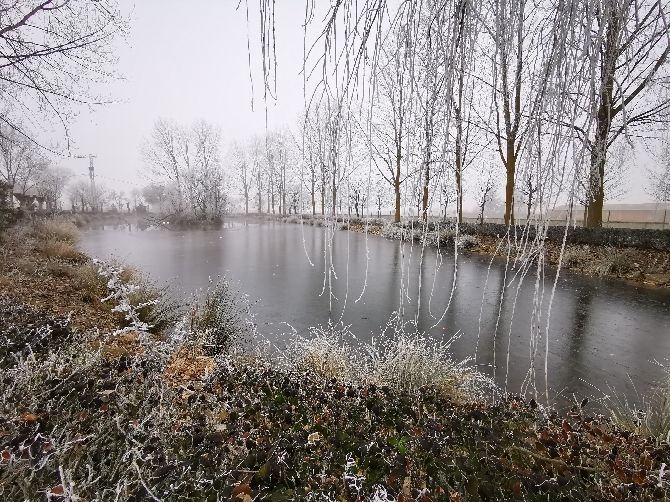 La laguna de Fresno de la Vega está prácticamente congelada en su totalidad. La mayor parte de dicha laguna está helada y tan solo una pequeña zona está sin helar. Un pequeño "rincón" donde se refugian las ocas y patos que habitan en dicho hábitat.