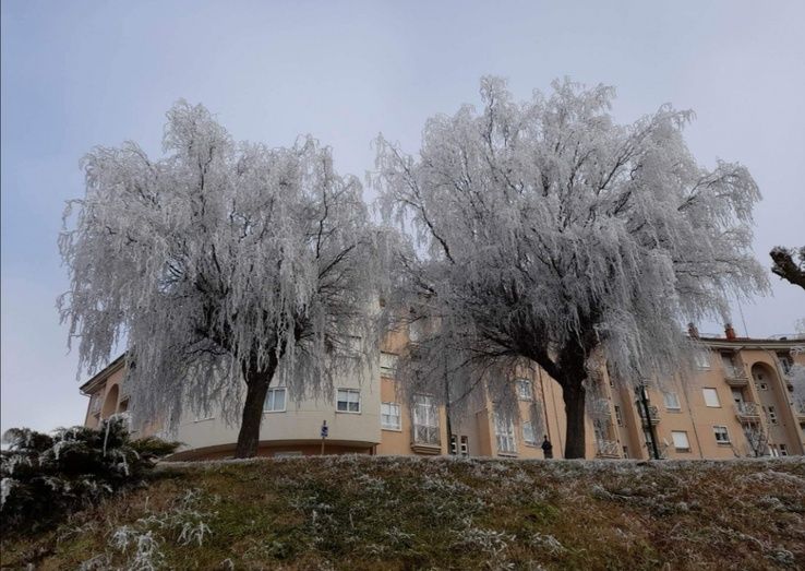 Las calles coyantinas también han recibido la cencellada. Los árboles ornamentales teñidos de blanco.