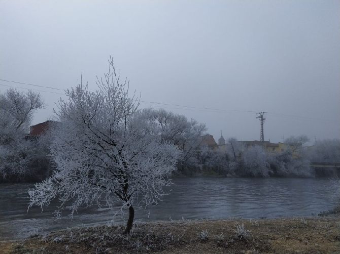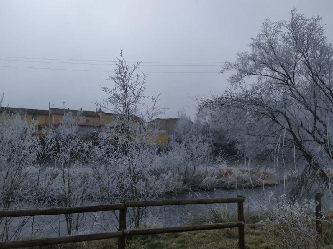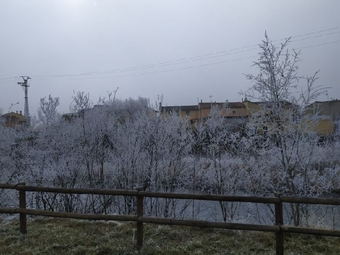 Pero la cencellada no solo se ha dejado ver fuera del pueblo. También en el casco urbano se han visto imágenes invernales.