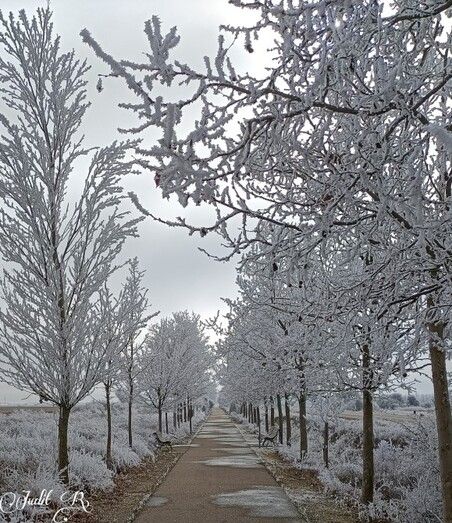 Casi como si hubiera nevado. Así de bonito ha lucido el paisaje de Castrofuerte. La Vía Verde convertida en blanca, la vista desde las bodegas y el paseo del río fueron algunos de los paisajes congelados por la cencellada.