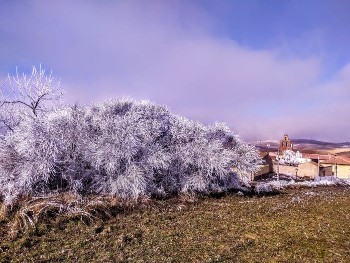 Fáfilas es uno de esos lugares privilegiados con uno de los atardeceres más hermosos. Pero no solo los atardeceres tienen un color especial en la localidad, la cencellada de los pasados días tambíén cobró un color y un brillo especial. Así fue captada la cencellada justo con unos rayos de sol. Simplemente, impresionante.