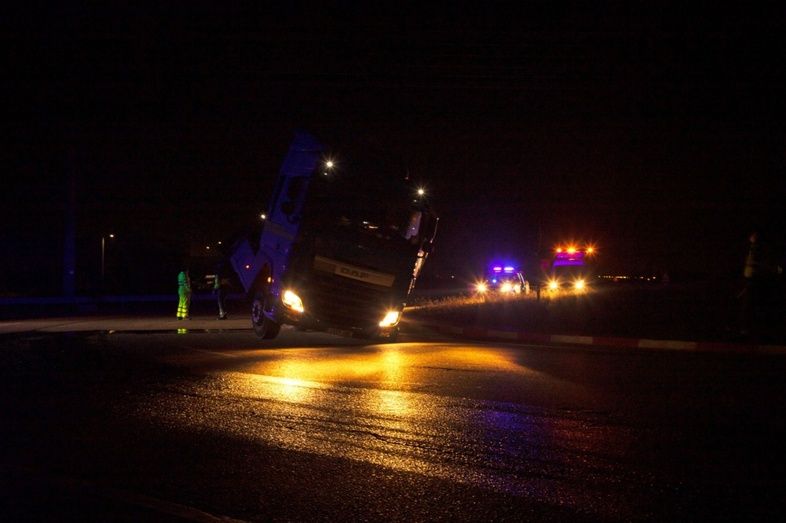 Herido el conductor de un trailer tras volcar en Villadangos del Páramo