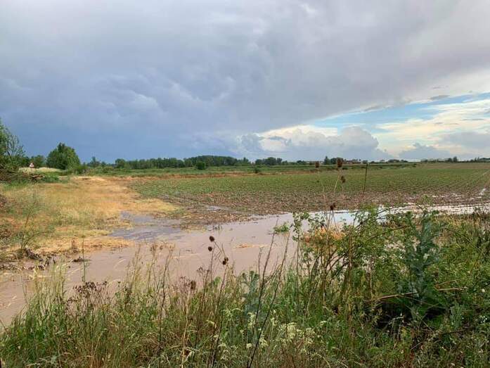 Una fuerte tormenta cayó este miércoles en Bustillo del Páramo. Las calles se transformaron en auténticos ríos. En menos de una hora cayeron 40 litros. También del intenso aguacero la tormenta llegó con pedrisco que dejó "canicas" de hielo en calles, plazas y campos.