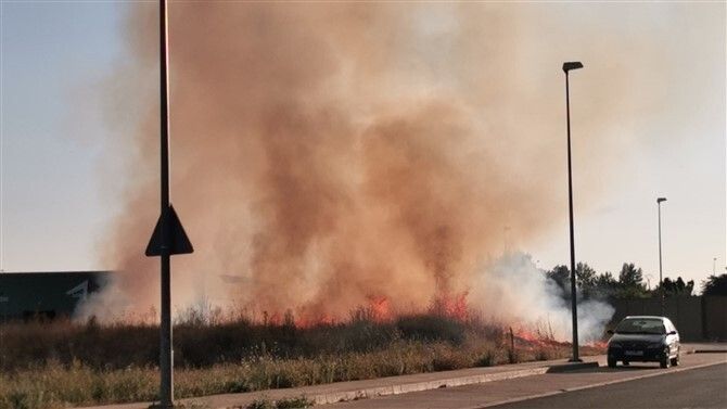 Incendio de unos matorrales en la salida de Valencia de Don Juan