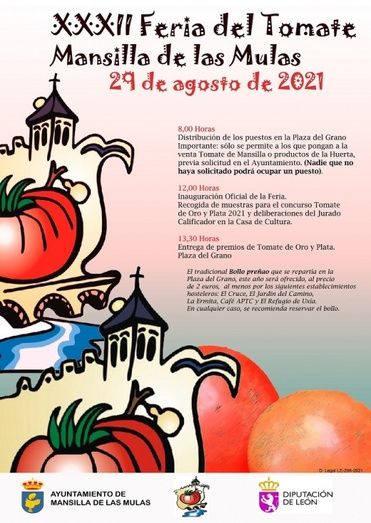 Último domingo de agosto y Mansilla de las Mulas recupera una de sus tradiciones más sabrosas: la Feria del Tomate. Tras la suspensión del año pasado de la Feria por motivo de la pandemia la cita regresa hoy a la villa acompañada por unas Jornadas Gastronómicas que se pueden disfrutar desde el pasado fin de semana.