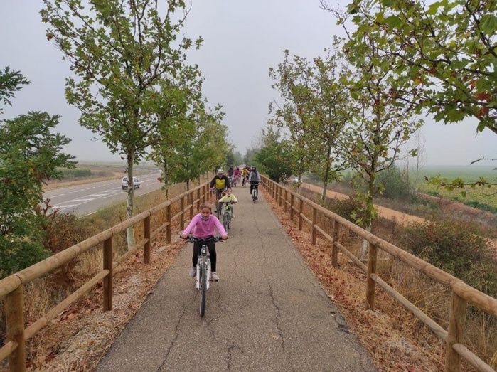 Con salida a las 10 horas desde la Plaza Mayor de Valencia de Don Juan, y tras hacer un breve recorrido urbano por diversas calles de la localidad para poner en valor la bicicleta como medio de transporte, se incorporaron a la Vía Verde con destino a Villaornate.