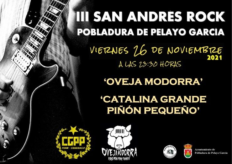 Pobladura de Pelayo GarcÃa festeja San Andrés y, como no podÃa ser de otro modo, arrancará las fiestas con música rock. El tercer San Andrés Rock tendrá lugar hoy viernes y contará con la presencia de Oveja Modorra y Catalina Grande Piñón Pequeño. La música comenzará a las 23:30 horas y llega con "muchas ganas" después del parón por la pandemia.Â