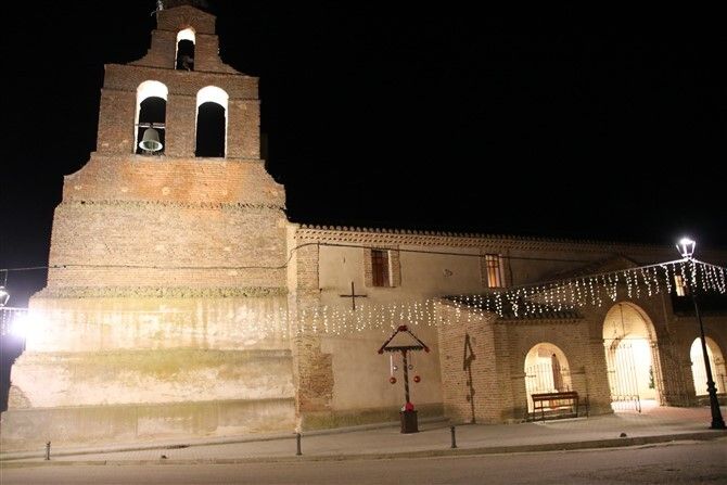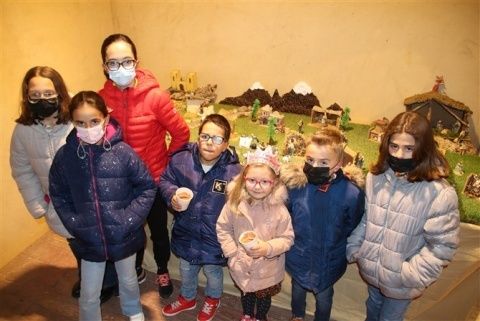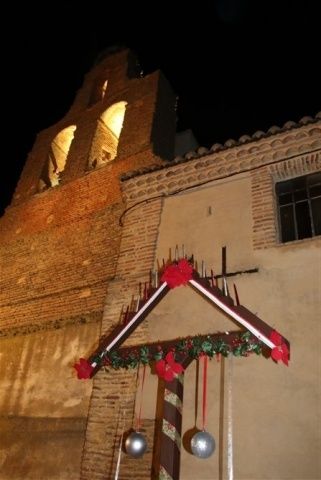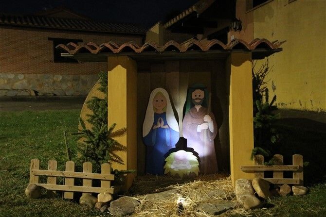 Como cada año, el pórtico de la iglesia alberga el tradicional nacimiento que atrae las miradas especialmente de los más pequeños. Ellos son los que más ilusión tienen y agitan las panderetas mientras curiosean entre los régalos que adornan el árbol que adorna la entrada del templo.