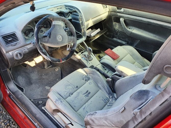 Además de robar el coche, lo han destrozado. Los ladrones lo utilizaron para robar en un almacen agrícola en Valcabado del Páramo con el método del alunizaje, pero se ensañaron con el coche. A los destrozos por el impacto se suman los hachazos recibidos por toda la carrocería, también utilizaron un extintor en su interior que terminaron de vaciar en el depósito de gasolina. "El coche ha quedado inservible" asegura Pablo, propietario del taller.