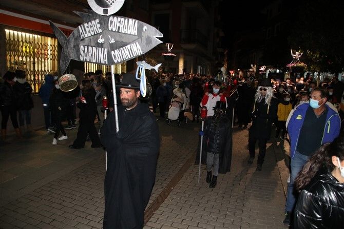 "La que liaron los chinos / Lo tomábamos a guasa / Pero el año pasado la sardina / Tuvo que quedarse en casa" A ritmo de este estribillo deambuló ayer el Entierro de la Sardina por el centro de Valencia de Don Juan.Tras un año de paréntesis por la pandemia, la alegría de este rocambolesco funeral regresó a la localidad ante cientos de personas que acudieron para disfrutar de las típicas coplillas de este evento. Versos que satirizan la actualidad local, nacional e internacional. "Este año tenemos de todo" aseguraban la Alegre Cofradía de la Sardina Coyantina, organizadora de este evento.