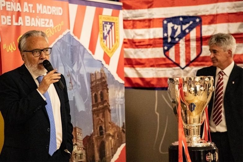 La peña atlética 'Un sentimiento' de la Bañeza celebró sus 25 años de historia. En el acto estuvo el exjugardor García Calvo. El presidente del Atlético, Enrique Cerezo, no pudo asistir por motivos personasles.