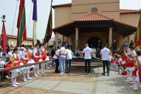 En la calle mucha alegría, tradición y orgullo lagunés. Una docena de pendones fueron testigos del bautizo del nuevo pendón. El acto tuvo lugar en la plaza San Juan Bautista, a las puertas de la parroquia y con la presencia de autoridades (religiosas y civiles). Por supuesto, los danzantes y numerosos vecinos que quisieron presenciar el acto .