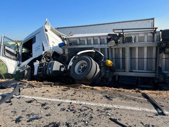 Tremendo accidente esta mañana en Bercianos del Páramo. El suceso ha tenido lugar esta mañana a las nueve de la mañana en la carretera CL 621 al colisionar una furgoneta y un camión.Ha fallecido una persona y otra ha resultado herida.