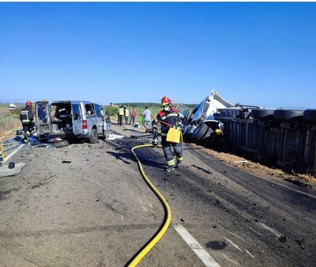 Según indicó el alertante en su llamada al 112 había dos personas heridas,la conductora del camión que había salido por su propio pie y el conductor de la furgoneta en estado inconsciente y atrapado.