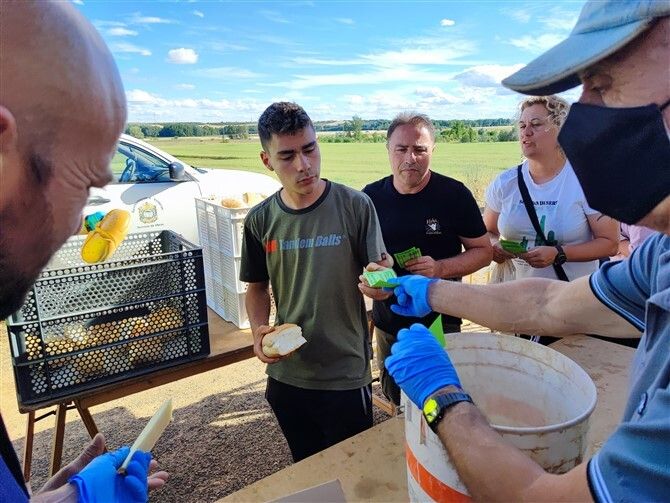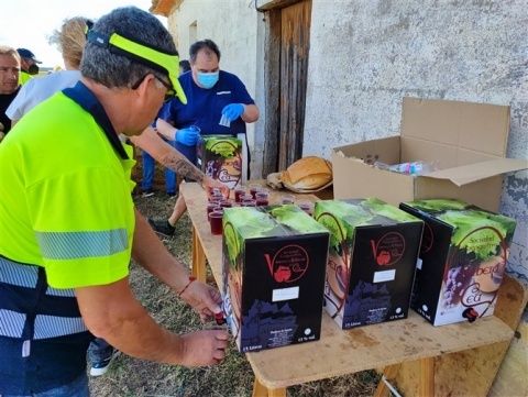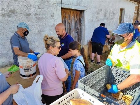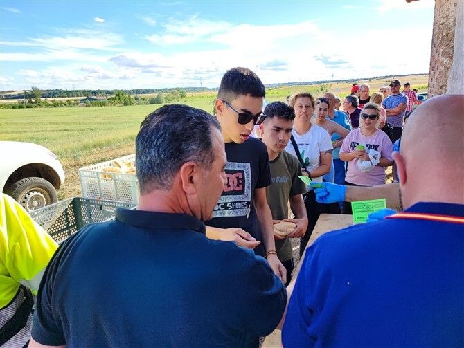 Después, la fiesta tornó en su lado más lúdico y festivo. La campa de la ermita se llenó de gruposs de amigos y familias para disfrutar de una tarde campestre. Las viandas típicas no faltaron a esta cita. Así las colas se sucedieron en el reparto del Pan y Queso (y un vasito de vino) rememorando la antigua costumbre de los pastores que repartían estas viandas entre los asistentes a la fiesta.