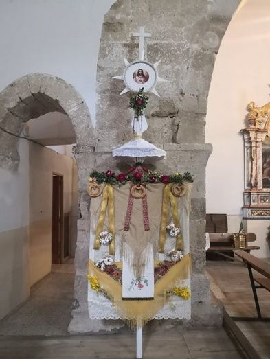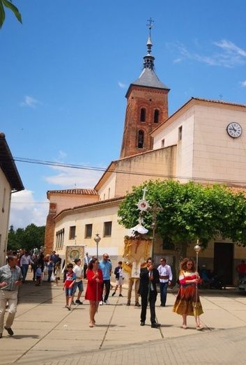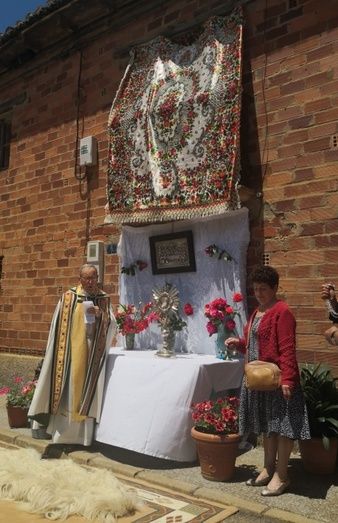 Un año más el Ramo de Fresno salió en el Corpus. De aspecto cuadrado y adornado con cintas de vivos colores, flores y dulces. Fue procesionado. No es cosa fácil, porque el elemento pesa lo suyo y su gran estructura hace complicado portarlo. Miro, Javier y Arturo fueron los encargados de "sacar" el Ramo el domingo