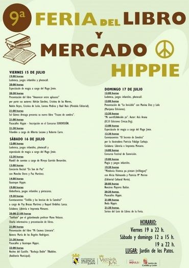 La novedad de la presente edición es que la Feria del Libro se complementará con un Mercado Hippie, que será el encargado de aportar la nota de humor y garantizar un rato de entretenimiento mediante pintacaras, cuentacuentos, música en directo de los años 60 y 70, magia, atracciones infantiles… y muchas actividades más.