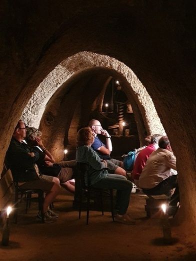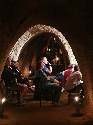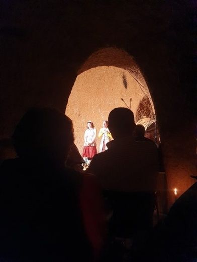 El Festival Bajo Tierra se estrenó ayer en Algadefe. Esta localidad incorporada este año a este festival comarcal acogió ayer varios pases en una singular bodega de la localidad. La bodega familiar Fuertes fue el escenario elegido para la obra Benditas de El Mono Habitado.