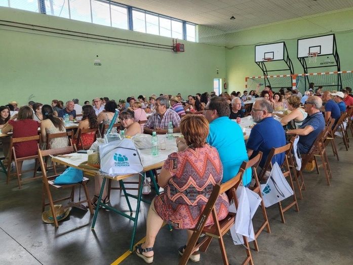 La jornada festiva y de convivencia se inició con la misa por la mañana para seguir con una comida popular, consistente en una paellada en el polideportivo municipal a la que asistieron algo más de doscientas personas, finalizando con un sorteo de regalos ofrecidos por empresas y entidades de la localidad, así como de León, La Bañeza y Santa María del Páramo.