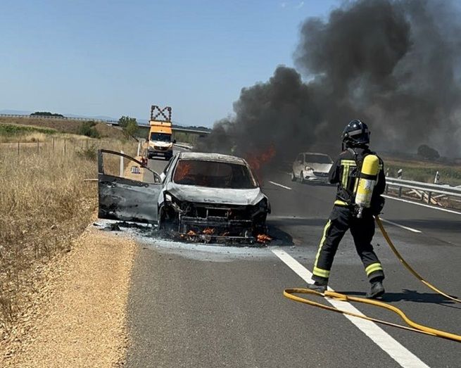 Los Bomberos del Ayuntamiento de León tuvieron que intervenir ayer en un incendio de un vehículo en la AP-71. El suceso tuvo lugar en el km19 sentido León a las 13:30 horas.
