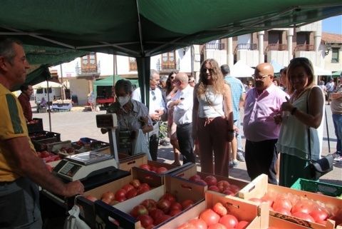 Mansilla de las Mulas presumió ayer de tomate en su Feria. Una cita que congregó a miles de personas en una animada feria en la que los productos de la huerta fueron protagonistas. Especialmente el tomate que reinó con su sabor.