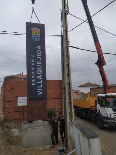 Este lunes se instalaban en Villaquejida los nuevos totems identificativos de la localidad. Una imagen renovada que se estrena esta semana, coincidiendo con las fiestas patronales, y forma parte de un plan de mejoras en el municipio desarrollado por el Ayuntamiento.