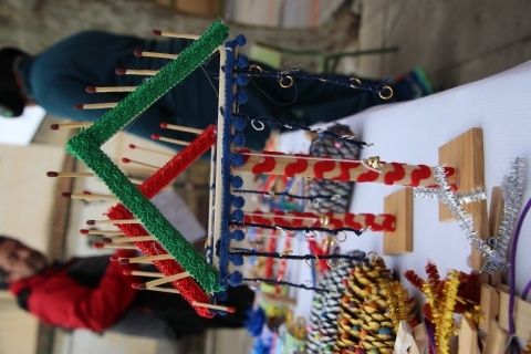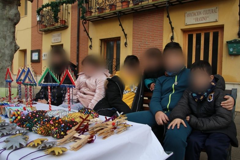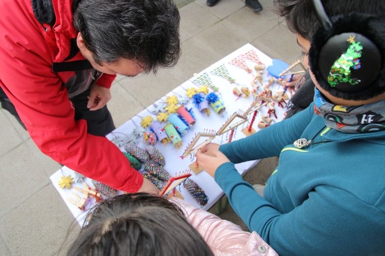 Los alumnos expusieron manualidades navideñas realizadas por ellos mismos con materiales reciclados y elementos vegetales. Todo aquel que quisiera podía adqirirlos a cambio de tierra, semillas, tiestos....