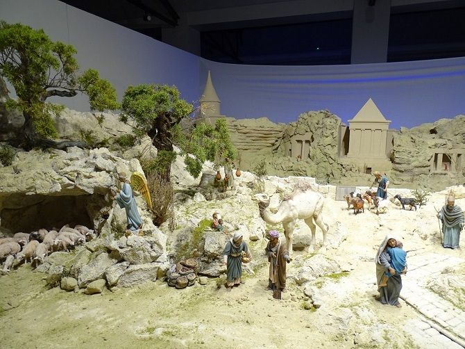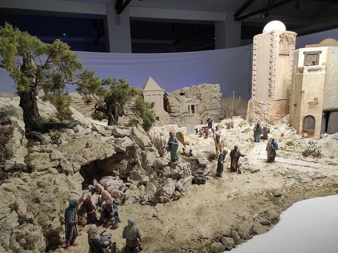 Se trata en esta ocasión de figuras de 20 cm de tallistas andaluces de primera categoría como José Ángel Oviedo, Joaquín Pérez o los Hermanos Cerrada que se distribuyen en un diorama de más de 24 metros cuadrados que representan escenas cotidianas muy próximas a las que se podían ver en la Palestina del siglo I.