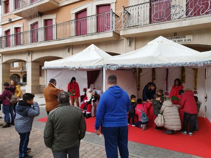 En la mañana del sábado Papá Noel se acercó hasta la localidad de Valencia de Don Juan y recibió en la Plaza mayor las peticiones de los más pequeños de la localidad.