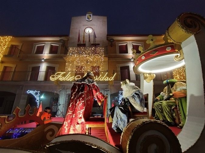 Tras realizar la Adoración en el Nacimiento, en cabalgata repartieron la ilusión por las calles de la localidad recalando en la plaza Mayor para la entrega de los regalos a todos los ‘pequecoyantinos’