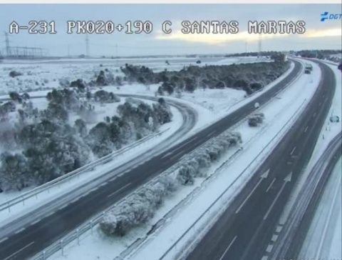 La nieve ha hecho acto de presencia en el Sur de la provincia de León. Tras la nevada de ayer por la tarde esta noche han continuado los copos y este es el aspecto de la carretera que une Villar de Mazarife y Santa María del Páramo