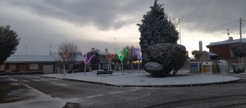 La nieve ha teñido de blanco Mansilla de las Mulas en la que es la primera nevada de la temporada. Una imagen poco habitual con la que esta mañana se levantan en la localidad.