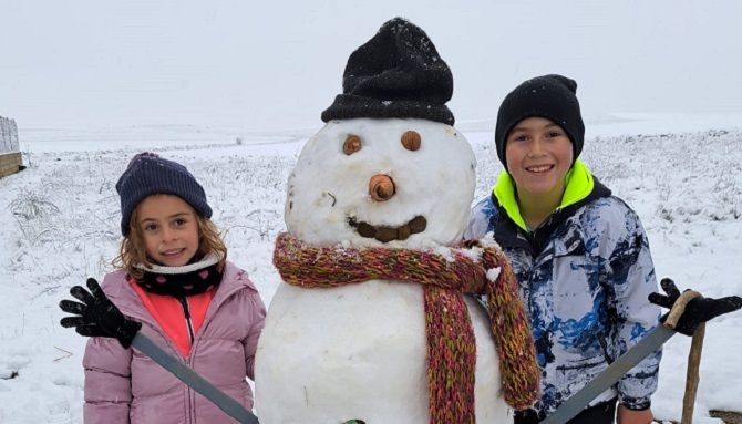 En Los Oteros es la comarca del Sur de León donde más ha cuajado la nieve. Aquí las precipitaciones de nieve incluso han superado los 2 centímetros y en pueblos como en San Román de los Oteros los muñecos de nieve han alegrado esta mañana a los pequeños.