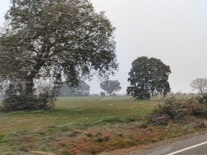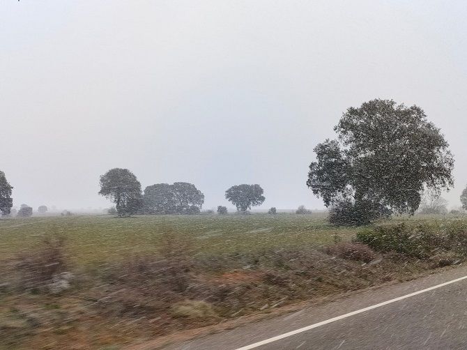 La nieve quiso recibir marzo y decidió hacer acto de presencia en el Sur de León. Aunque en la mayoría de los pueblos que pudieron ver algún copo fue de forma ligera, en algún punto sí se pudo ver nieve de forma algo más contundente. Es el caso del monte de Valencia entre Valencia de Don Juan y Fuentes de Carbajal, aquí la nevada tuvo algo más de intensidad y los copos presentaron un tamaño considerable.