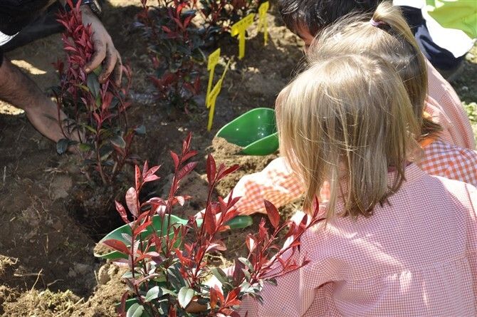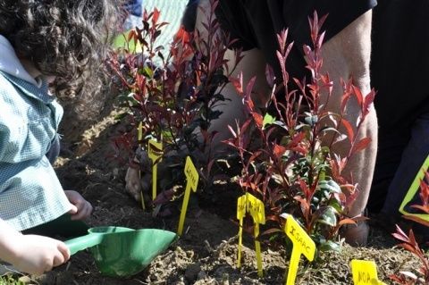 Desde hoy, y con la participación de los alumnos y profesores esta mañana, el CEIP Bernardino Pérez cuenta con 60 photinias, que se suman a las plantadas justo hace un año, 6 nuevos cerezos japoneses y 9 glicinias.