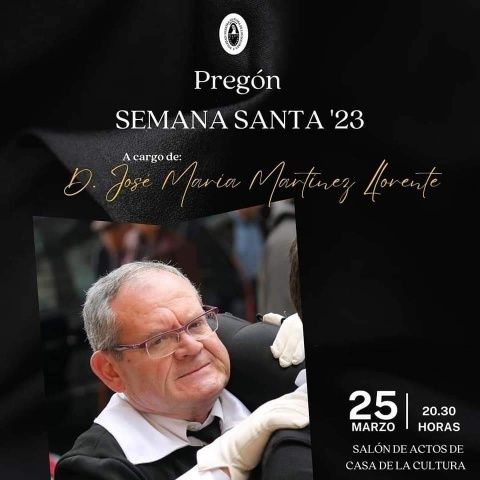El acto, que tuvo lugar en el salón de actos de la Casa de Cultura, sirvió de pistoletazo de salida para la agenda semanasantera. Acompañaron al pregonero el abad de Nuestra Señora de los Dolores y Soledad, Jesús Pedro Lorca López, y el abad de la Hermandad Jesús de Nazaret, Sigerico Díaz Andrés.