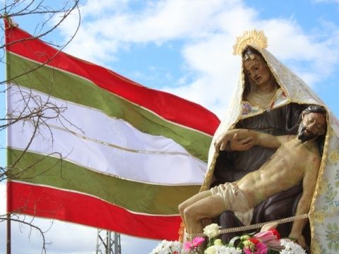 Desde primera hora de la mañana los preparativos para la cita de esta tarde están en marcha. Voluntarios preparan una alfombra de colores que se lucirá en la procesión de la Virgen de las Angustias. Como manda la tradición, y el Voto, los danzantes del pueblo bailarán a su patrona para honrarla. La procesión dará comienzo a las 17:00 horas.