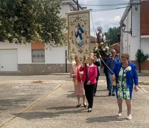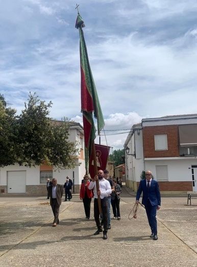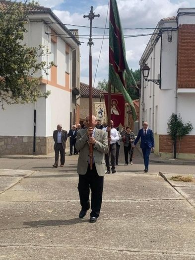 Aunque este año no hay mayo el espíritu de la tradición y cariño llena la localidad. Este sábado el pueblo volvió a cumplir con el Santo y lo procesionaron con amor por las calles de la localidad. Posiblemente es el momento más destacado de la agenda festiva. La pendoneta abriendo la comitiva y después el Santo San Miguel seguido de la Virgen Inmaculada. Todo al son de dulzaina y tamboril.