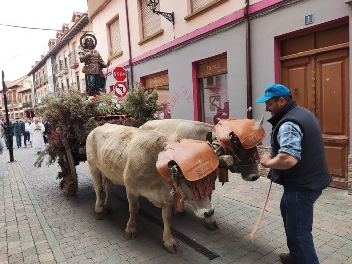 San Isidro llevó la fiesta y la tradición a Santa María del Páramo. La localidad celebró la fiesta este lunes manteniendo raíces y tradiciones con un desfile en el que destacó el carro engalanado como parte de la fiesta. Hubo desfile de gigantes y cabezudos, dulzaineros, pendones.... "Así mantenemos nuestra tradición" destacó la alcaldesa Alicia Gallego.