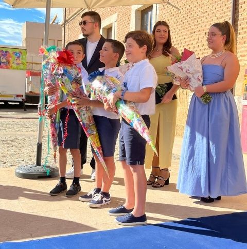 Ante la multitud que se agolpaba a las puertas del consistorio municipal, Sandra, Kiara y Joaquín han sido presentados como Reinas y Rey de las fiestas, mientras que los príncipes han sido Alejandro, Unai y Alejandro.