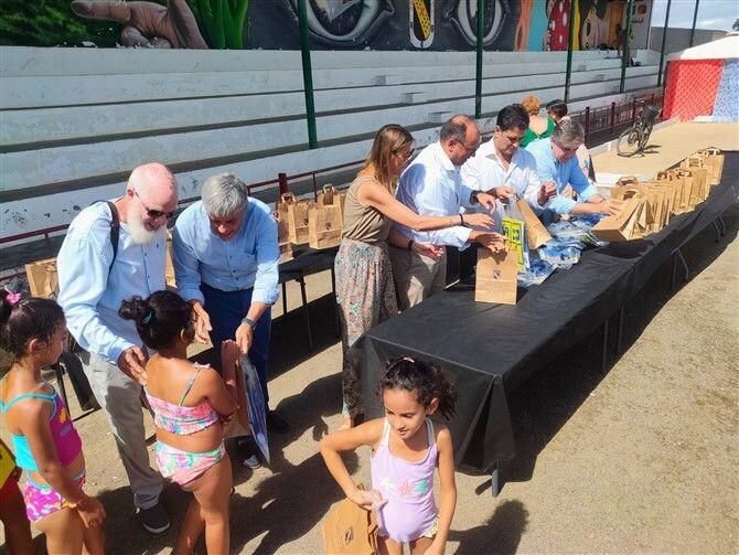 Valencia de Don Juan acoge hoy a los niños saharauis que disfrutan de unas 'vacaciones en paz' junto a familias de Castilla y León. Un encuentro que se ha celebrado en el complejo polideportivo del municipio, en sus conocidas piscinas. El acto ha contado con la presencia del gerente de Servicios Sociales, Carlos Raúl de PAblos, la directora general de Familias, Infanca y Atencion a la Diversidad, Esperanza Vázquez, el delegado territorial de la Junta en Leónl, Eduardo Diego, el gerente territorial de Servicios Sociales de León, Juan Antoniko Orozco, y el alcalde de la localidad, Ricardo Barrientos, que ha actuado como anfritrión. Además, los niños han estado acompañados con la presidenta de la Unión de Asociaciones de Castilla y León Solidarias con el Pueblo Saharaui (Uacyl-Sahara) y el delegado saharaui en Castilla y León, Abdalahe Hamad Ahmed.