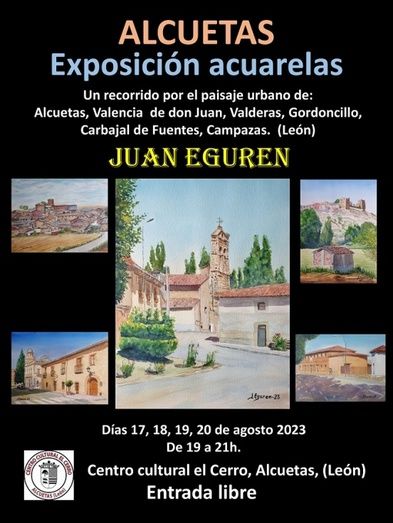 El pintor Juan Eguren (Oviedo, 1960) expondrá en el Centro Cultural El Cerro de Alcuetas sus acuarelas en un recorrido por el paisaje urbano de Alcuetas, Valencia de Don Juan, Gordoncillo, Valdera, Carbajal de Fuentes, Campazas…