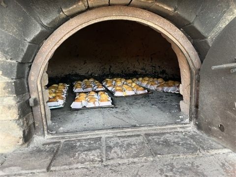 Se repartieron bollos “preñaos” elaborados por Panadería Cueto y las magdalenas cocidas en el propio horno. Casi 500 bollos preñaos que fueron degustados en hermandad y en un ambiente festivo en el que no faltó la música de dulzaina y tamboril.