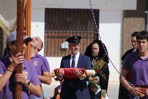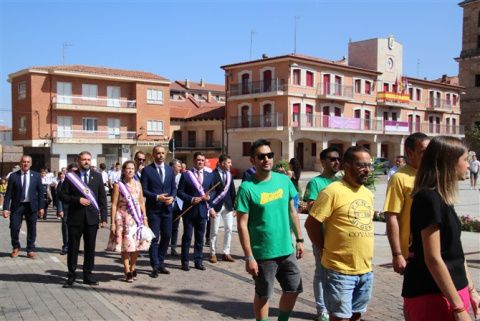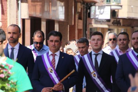 El pendón coyantino encabezó la comitiva que unió el Ayuntamiento con la iglesia de los Padres Agustinos. En la comitiva la Rena, el Rey, las Damas, Pajes, Dama infantil y Paje infantil (todos ellos con los trajes típicos). Escoltando al Cirio también la Corporación municipal, representantes de peñas y la Banda de Música de Valencia de Don Juan.
