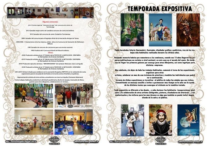 La muestra se podrá visitar los viernes y sábados de 19.00 a 21.00 horas y domingos y festivos de 12.00 a 14.00. Durante estos días se podrá disfrutar de los diversos trabajos ilustrativos que realiza Pablo Celorio con los cuales ya ha recorrido gran parte del territorio español con su obra y que llenará con luz, color y sobre todo ilusión la sala de exposiciones de la villa paramesa, que sigue volcada en programar, culturalmente hablando, diversos actos para el disfrute de todos los vecinos de Santa María del Páramo y su comarca.