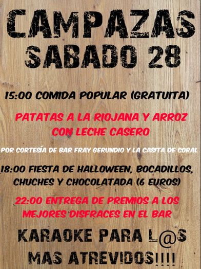 Un año más y como ya viene siendo costumbre en Campazas se celebra la fiesta de Halloween el sábado previo al día de los Santos. Este año la fiesta la organizan las personas que regentan el teleclub de la localidad, Bar Fray Gerundio.