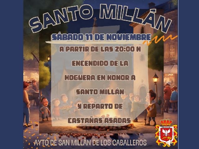 Hace una década que los vecinos de San Millán de los Caballeros retoman "Santo Millán" donde en la tarde del sábado a pesar de la caída de la noche y el frio del mes de noviembre hubo más de un centenar de asistentes disfrutando del calor de la hoguera, del reparto de las castañas asadas, la degustación de licores, la elaboración de la queimada y aprovechando el calor de las brasas una parrillada de carne.
