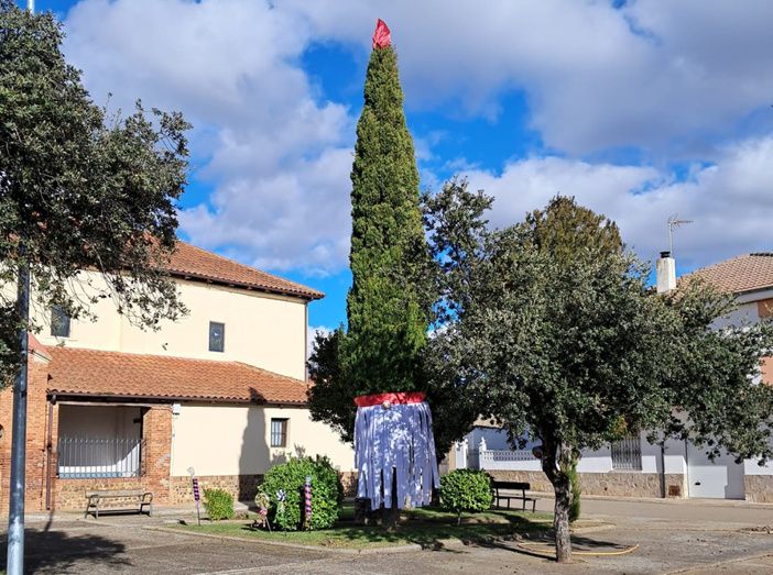 Dentro de la decoración navideña colocada por un grupo de vecinos de Benamariel destaca un simpatico gnomo de Navidad. Además de simpático sorpende su tamaño y es que es tan grande como el ciprés que está justo a la entrada de la iglesia.